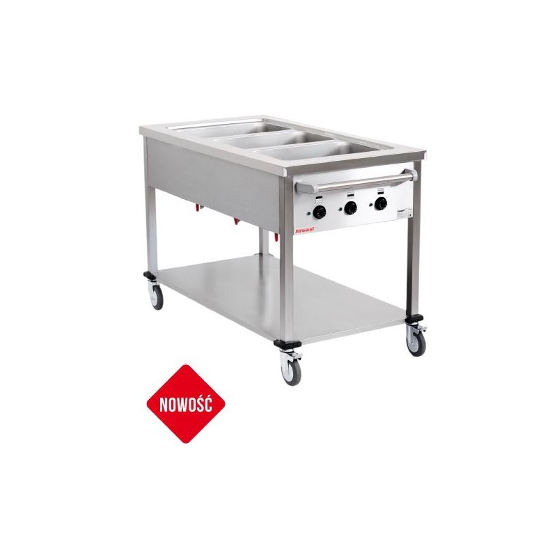 Zbiorniki posiadają wymiary umożliwiające umieszczenie pojemników GN 1/1 o głębokości h=200mm. Każda z komór może być niezależnie sterowana w zakresie od 30⁰ do 90⁰ C. Zbiorniki wyposażone są w zawory spustowe wody.